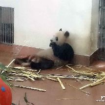 瘫瘫子 :回复@ 养只兔子当熊猫 :后来雅一上了架子,星一吃完竹子以后在后面盯了一会儿雅一,然后睡觉了