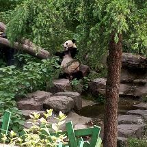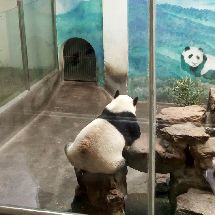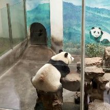 浩浩果真很活泼好动,一直很欢快地找笋,吃笋,进草丛里玩,追小鸟玩。在浩浩进水池玩的时候,解说员小哥一脸痴汉地说“大家快看!他正在玩水!快看快看!他在拨水!”比我还要激动。而朝阳就是在室内安稳地睡着。看他吃了一会儿笋又继续去睡了。睡觉的时候不停调整脸在木架间的位置,抬起头的时候脸上的毛都有痕了。听解说员小哥说,过段时间浩浩和朝阳约期到了之后,他俩会被送回四川。等到红山动物园大熊猫馆扩建之后,会再来一些新的大熊猫。希望在浩浩和朝阳回四川之前,我还能有机会多见见他俩QAQ